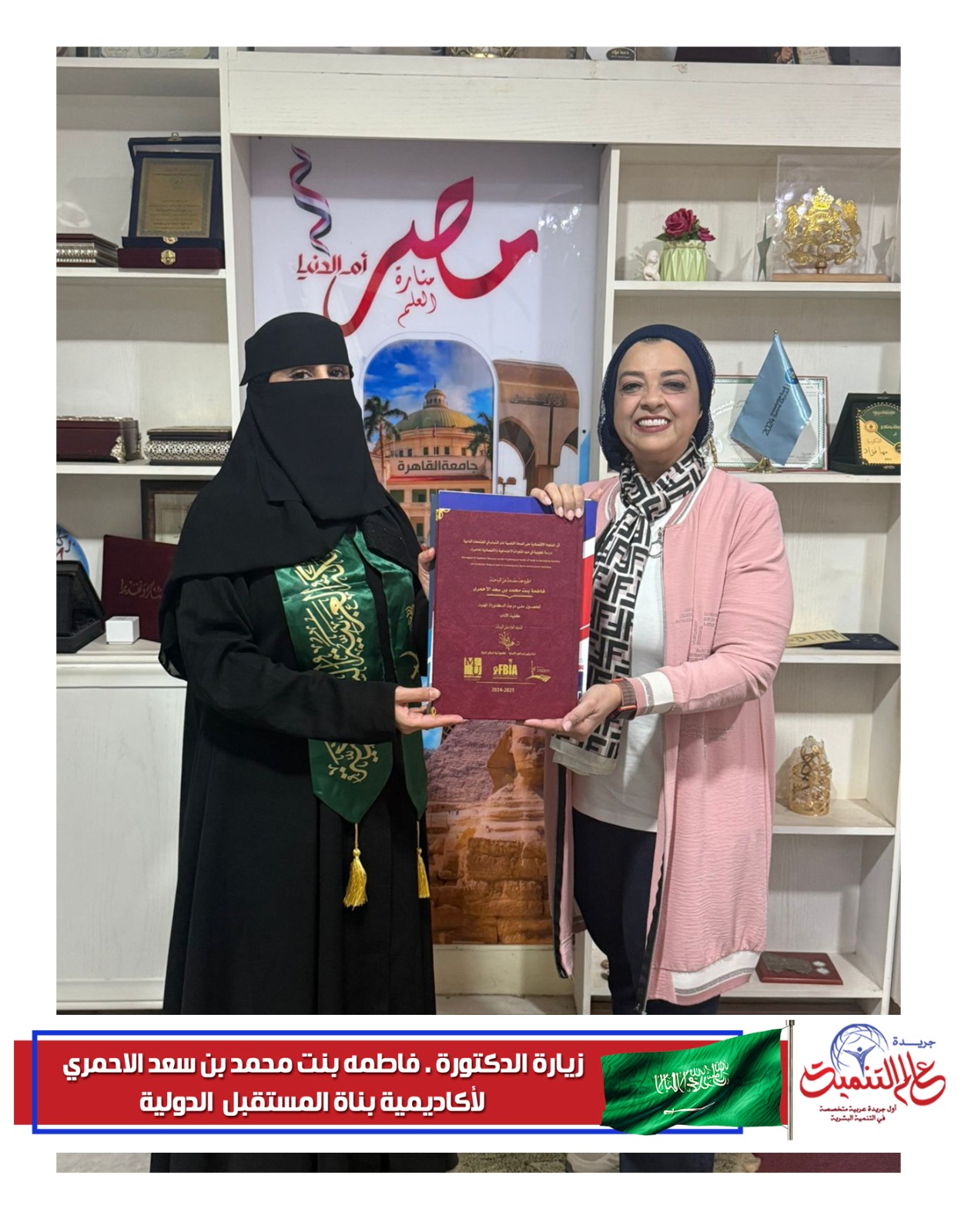 زيارة الدكتورة فاطمة بنت محمد بن سعد الأحمري لأكاديمية بناة المستقبل الدولية لاستلام مستندات الدكتوراه