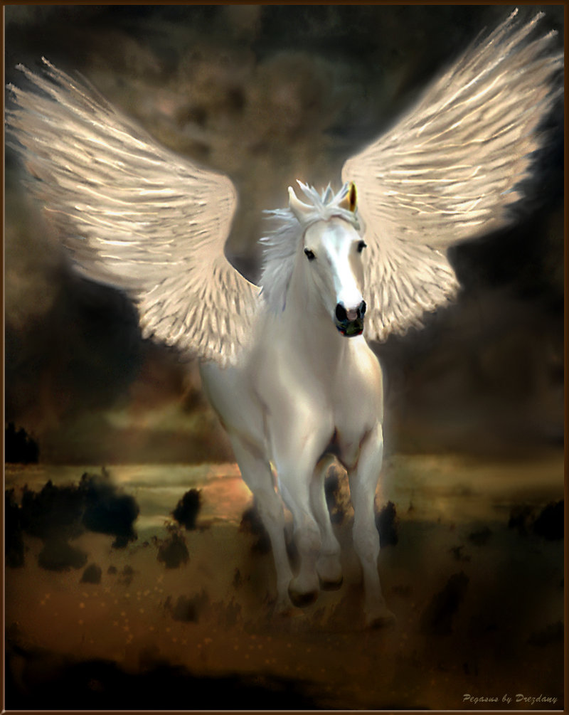 وقد وافق الملك حيث تخيل نفسه راكبا على الحصان الطائر الوحيد في العالم