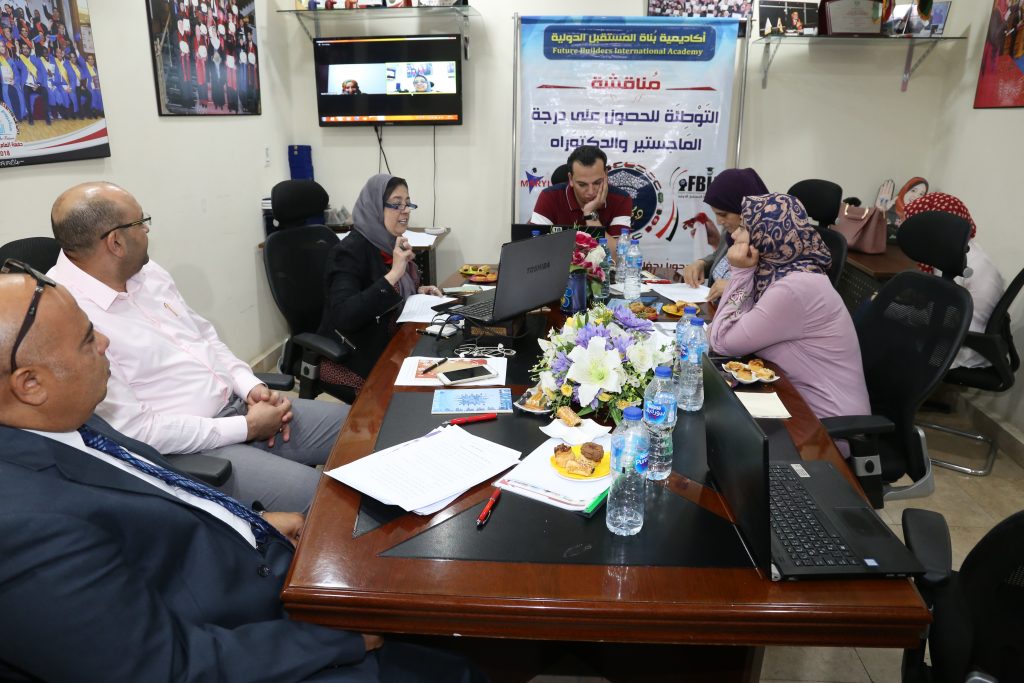 تجرى اليوم أكاديمية بناة المستقبل الدولية مناقشة حول محاور الرسالة العلمية للباحثة ” فاطمة مفتاح المغربي ” مقدمة للحصول علي درجة الماجستير المهني في تخصص (التنمية البشرية ) وذلك عبر الغرفة الألكترونية التى يحضر من خلالها الباحثيين من دول عربية مختلفة, حيث يأتى ذلك ضمن العام الدراسى (2019) لأكاديمية بناة المستقبل الدولية, والتى تم أنعقادها اليوم بتاريخ 7 من شهر يوليو فى تمام الساعة 10 صباحا بتوقيت القاهرة,وقام بالأشراف علي بحثه د/ مها فؤاد أستاذ ورئيس قسم العلوم الانسانية بأكاديمية بناة المستقبل الدولية وجريدة عالم التنمية