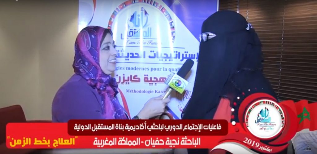 وفي لقاء اعلامي مع الدكتورة #مها فؤاد من فاعليات الاجتماع الدوري لباحثي اكاديمية بناة المستقبل الدولية من المملكة المغربية، قالت الباحثة “نجية حفيان” من المملكة المغربية اخترت إدارة الأعمال موضوع بحثي لأن لدي شركة مواد تجميل طبيعية وأعمل علي تطويرها والأرتقاء بها إلي مكانة اعلي، وكان لدي بالشركة مشكلة تسويق لذلك كان موضوع بحثي استراتيجية التسويق المنتجات الطبيعية، ثم أضافت شكر لزوجها وابنها لدعمهم الدائم لها.