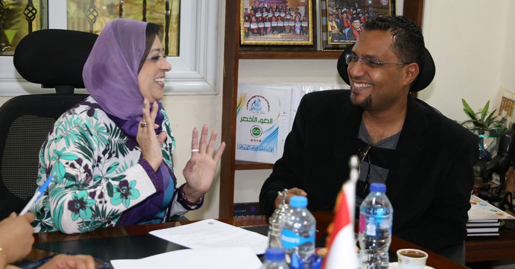 قابلت أم المدربين العرب الدكتورة “مها فؤاد” مطورة الفكر الإنساني الباحث ميال ابوبكر القيسي الذي يعمل بالمجال الرقابة والتفتيش للجمعية اليمنية لمصدري الأسماك باليمن في اكاديمية بناة المستقبل، وكان النقاش حول موضوع بحثه الذي هوا بعنوان ” منهجيات التخطيط الاستراتيجي لإدارة وتنمية الثروة السمكية وآثرها علي القطاع السمكي بالجمهورية اليمنية” , وقد اضاف الباحث رغبته بتطوير وتحديث الاطر المنهجيه لتتواكب مع خطط الدول لعام ٢٠2٠
