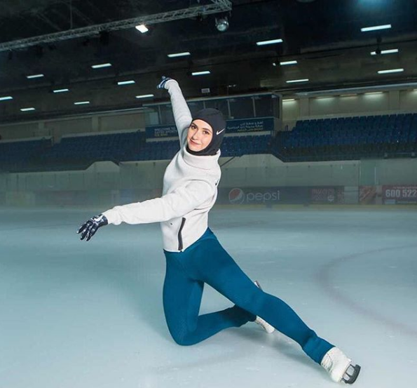 الرياضية الشابة البالغة من العمر 22 عاما، لاحت بكل أنواع النقد اللاذع وتحدت العقبات الاجتماعية حين خطت خطواتها الأولى على ساحة الجليد البيضاء مرتدية حجابها المتواضع الحشم في مسقط رأسها أبو ظبي.