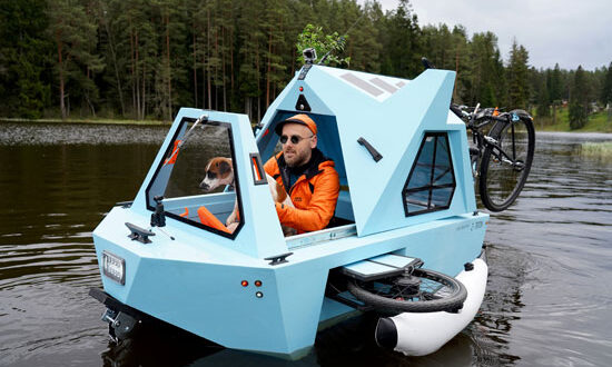 وفى عدة صورة نشرتها “رويترز”، كشفت كيف أجرى المصمم التعديلات اللازمة على تطوير اختراعه، والاختبارات التي أجراها على الاختراع الجديد سواء فى الأرض أو المياه، كما توضح جوانب الاختراع، فهو عجلة ثلاثية الأبعاد، تحتوى على غرفة صغيره تكفى لوجود فرد، كما أنها مصممة لتعمل كمركب أيضا.