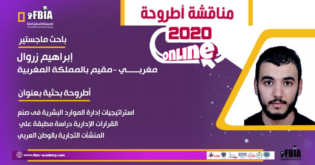 حصل الباحث “ إبراهيم زروال ” درجة الماجستير المهني 2020 بكلية بدرجة جيد جداً إدارة الأعمال (لجنة إدارة الأعمال /إدارة المشروعات) ، تحت عنوان ” استراتيجيات إداره الموارد البشريه فى صنع القرارات الإداريه دراسه مطبقه علي المنشأت التجارية بالوطن العربي “، بعد اجتماع الدكتورة مها فؤاد رئيسة أكاديمية بناة المستقبل الدولية ولجنة المناقشة والإنتهاء من التقرير النهائي لللجنة.