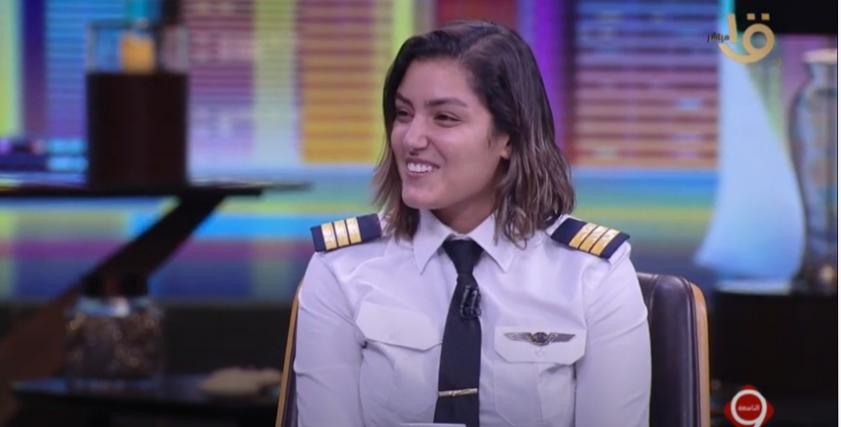 وأضافت خلال لقائها مع برنامج “التاسعة” المذاع عبر القناة الاولى بالتلفزيون المصري، إنها كانت تخاف من الطائرات وأن والدها كان يجبرها على الجلوس بجوار الشباك أثناء السفر للسعودية وآداء العمرة للتعود على الطيران وأنها بعدها احبت الطيران وتمنت أن تتعلم الطيران.