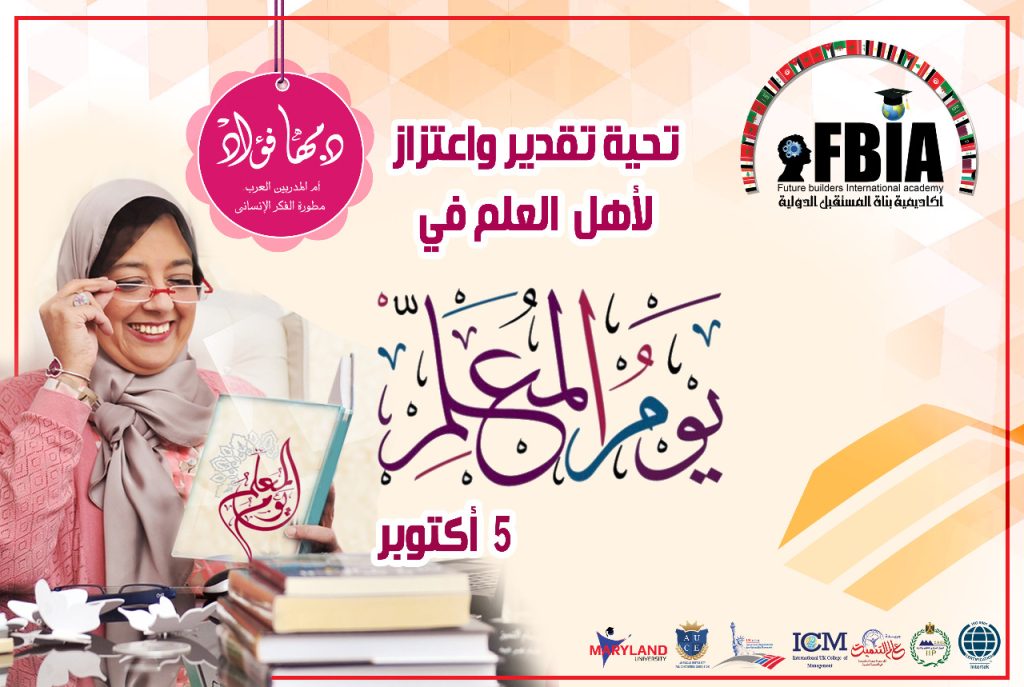 في هذا اليوم بالذات وما أجمله من يوم، تهنئ الدكتورة #مها فؤاد رئيسة أكاديمية بناة المستقبل كل معلم و معلمة بمناسبة يوم المعلم العالمي 5 أكتوبر ، تقديرًا واعترافاً بالدور الطليعي والمحوري للمعلمين إن المعلم هو الأب الذي يلجأ إليه الطلبة عند النوائب؛ وهو المستشار المؤتمن الذي لا تعييه الوسيلة لحماية المجتمع من الانجراف إلى متاهات الضياع؛ وهو الحكيم الذي يحمي بمظلة قلمه الأمة من الرياح المغرضة ويدق أجراس اليقظة في القلوب الغافلة.
