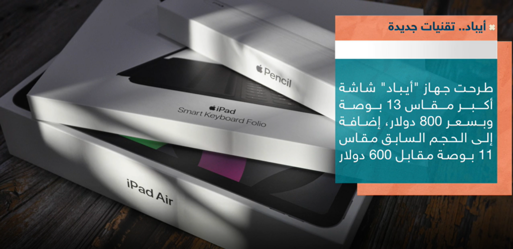 في أحدث تحديث كبير لأجهزتها اللوحية، كشفت شركة أبل، عملاق صناعة التكنولوجيا الأميركية، عن أجهزة آيباد جديدة تعززت بتقنيات مبتكرة وتحسينات مذهلة. تم الكشف عن سلسلتين رئيسيتين: آيباد برو وآيباد أير، مع إضافة عدة ملحقات ومزايا جديدة.