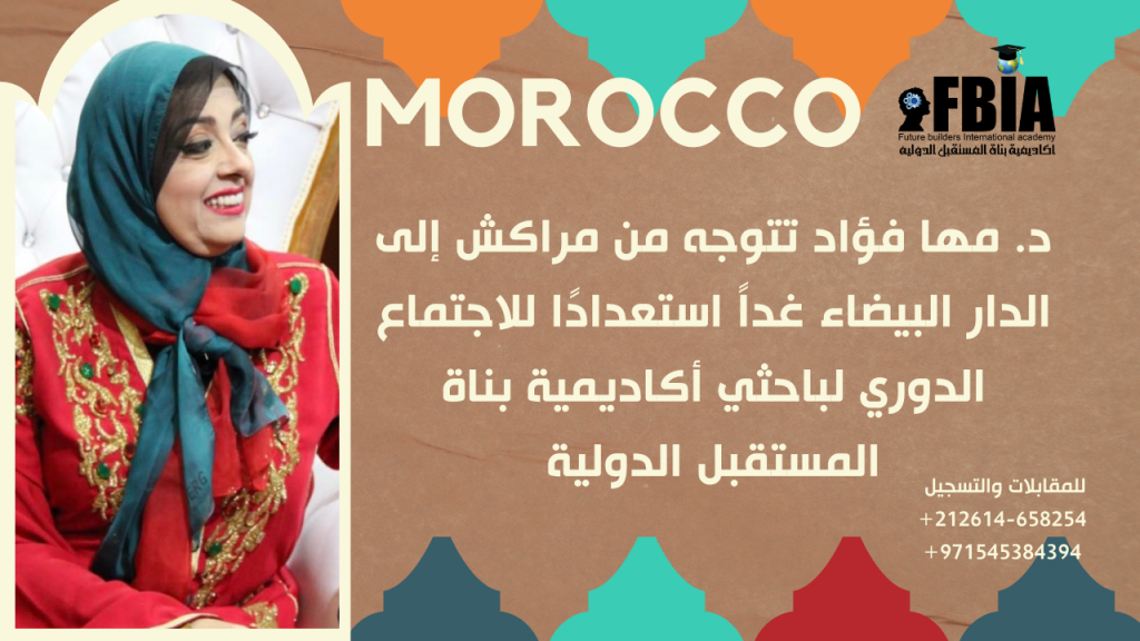 د. مها فؤاد تتوجه من مراكش إلى الدار البيضاء غداً استعدادًا للاجتماع الدوري لباحثي أكاديمية بناة المستقبل الدولية