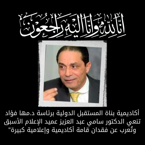 تنعى أكاديمية بناة المستقبل الدولية، برئاسة الدكتورة مها فؤاد، فقيد الوسط الأكاديمي والإعلامي، الأستاذ الدكتور سامي عبد العزيز، عميد كلية الإعلام بجامعة القاهرة الأسبق، والذي وافته المنية بعد مسيرة علمية حافلة بالإنجازات.