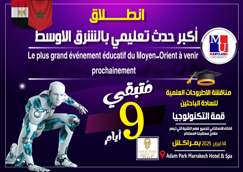 تنظم أكاديمية بناة المستقبل الدولية برئاسة الدكتورة مها فؤاد، قمة التكنولوجيا “الذكاء الاصطناعي للجميع”، التي ستُعقد في فندق آدام بارك أوتيل بمراكش بالمكتب الاقليمي لشمال افريقيا يوم 14 فبراير 2025، في حدث هو الأكبر من نوعه في المنطقة، حيث يجمع كبار الخبراء، الأكاديميين، والمتخصصين في مجال التكنولوجيا وإدارة الأعمال من جميع أنحاء الوطن العربي.