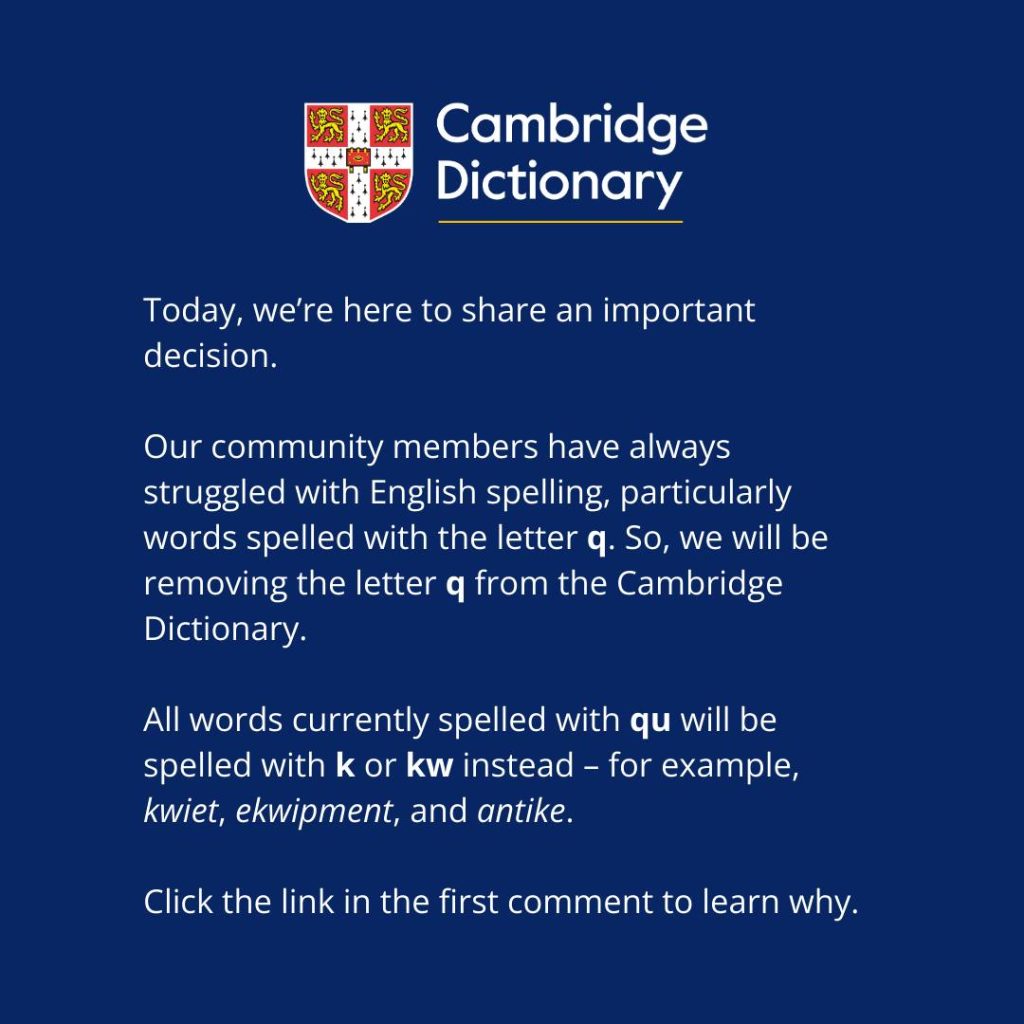 #جامعة_كامبريدج #حذف_حرف_Q #تطوير_اللغة_الإنجليزية #خبر_عاجل