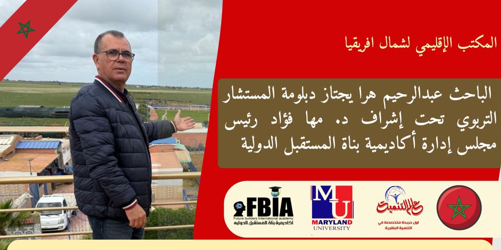 اجتاز رجل الاعمال والباحث المغربي عبدالرحيم هرا ددبلومة المستشار التربوي، وذلك في أكاديمية بناة المستقبل الدولية، تحت إشراف الدكتورة مها فؤاد، رئيس مجلس إدارة الأكاديمية وراعية الابتكار والإبداع وريادة الأعمال في الوطن العربي.