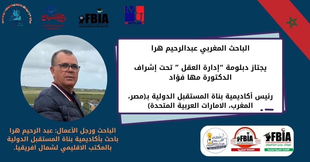 أتمّ الباحث ورجل الأعمال المغربي عبدالرحيم هرا، بنجاح دبلومة “‘دارة العقل ”، ضمن برامج ودبلومات أكاديمية بناة المستقبل الدولية، وذلك تحت إشراف الدكتورة مها فؤاد، رئيس مجلس إدارة الأكاديمية، وراعية الابتكار والإبداع وريادة الأعمال في الوطن العربي.