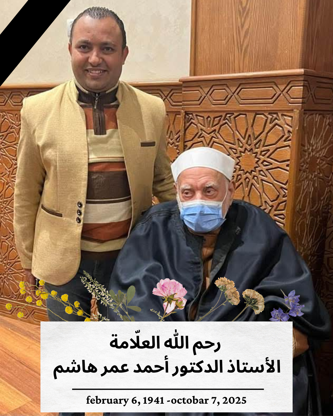 “رحم الله العلاّمة المحدث فضيلة الأستاذ الدكتور أحمد عمر هاشم وغفر له وأسكنه فسيح جناته في معية الحبيب المصطفى وآل البيت بحق حبه لهم.”