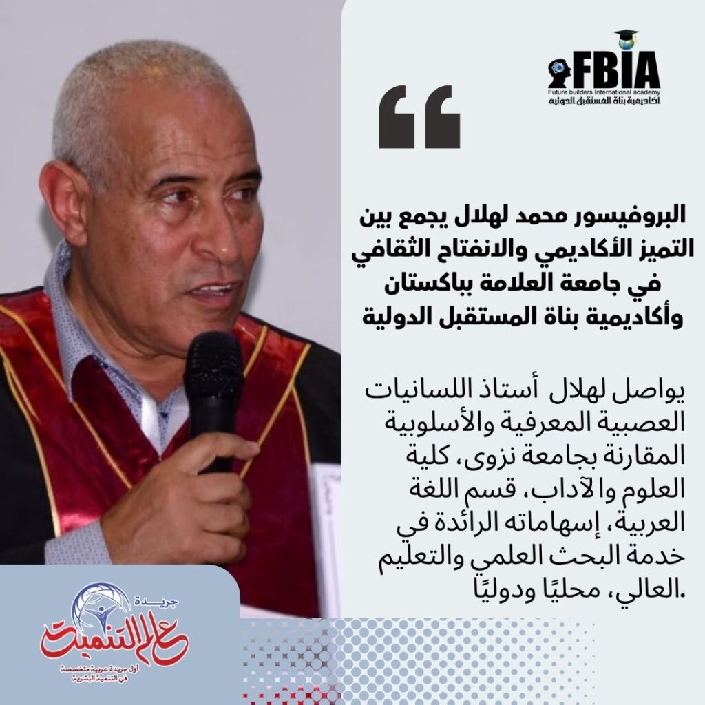 يواصل الأستاذ الدكتور محمد لهلال أستاذ اللسانيات العصبية المعرفية والأسلوبية المقارنة بجامعة نزوى، كلية العلوم والآداب، قسم اللغة العربية، إسهاماته الرائدة في خدمة البحث العلمي والتعليم العالي، محليًا ودوليًا.