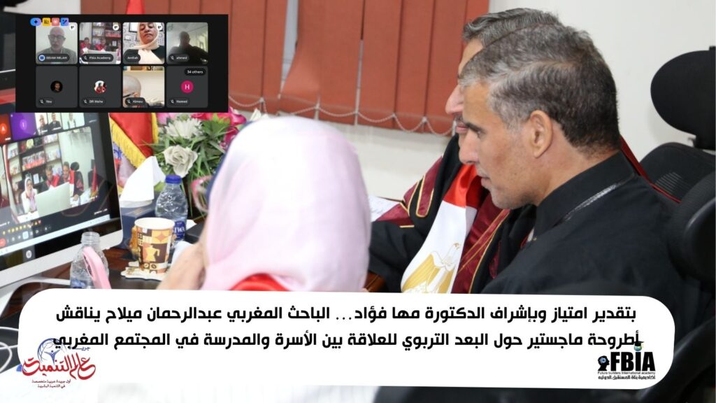 في إنجاز علمي مميز يعكس تطور الوعي التربوي والبحث الأكاديمي في المغرب، حصل الباحث المغربي عبدالرحمان ميلاح على درجة الماجستير بتقدير امتياز، وذلك عقب مناقشة علمية عبر الإنترنت في تخصص الآداب وعلم النفس، وسط إشادة واسعة من اللجنة العلمية والحضور، وتحت إشراف رئيسة أكاديمية بناة المستقبل الدولية الدكتورة مها فؤاد.