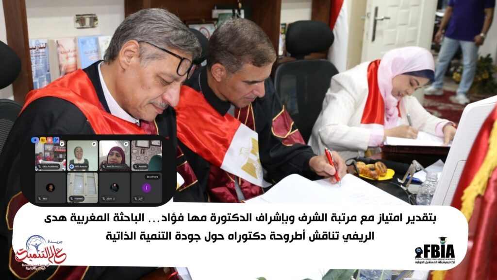 في إنجاز أكاديمي جديد يعزّز حضور الباحثات المغربيات في حقول التنمية البشرية، حصلت الباحثة المغربية هدى الريفي على درجة الدكتوراه بتقدير امتياز مع مرتبة الشرف، وذلك عقب مناقشة علمية عبر الإنترنت في تخصص العلوم الإنسانية والتنمية البشرية، وسط إشادة واسعة من اللجنة العلمية والحضور، وتحت إشراف رئيسة أكاديمية بناة المستقبل الدولية الدكتورة مها فؤاد.