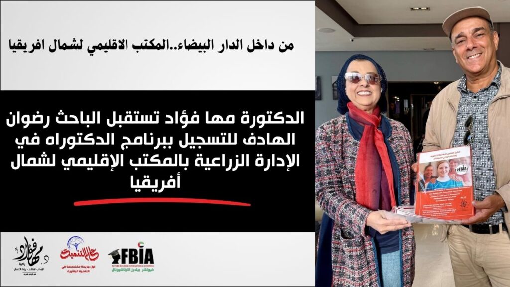 تواصل الدكتورة مها فؤاد، رئيس مجلس إدارة أكاديمية بناة المستقبل الدولية والوكيل الحصري لجامعة ميريلاند في مصر والمغرب والإمارات العربية المتحدة، لقاءاتها العلمية بالمكتب الإقليمي لشمال أفريقيا، حيث استقبلت الباحث رضوان الهادف، الفنان والاستشاري الزراعي بمدينة الدار البيضاء، وذلك لاستكمال إجراءات التحاقه ببرنامج الدكتوراه بكلية إدارة الأعمال – تخصص الإدارة الزراعية.