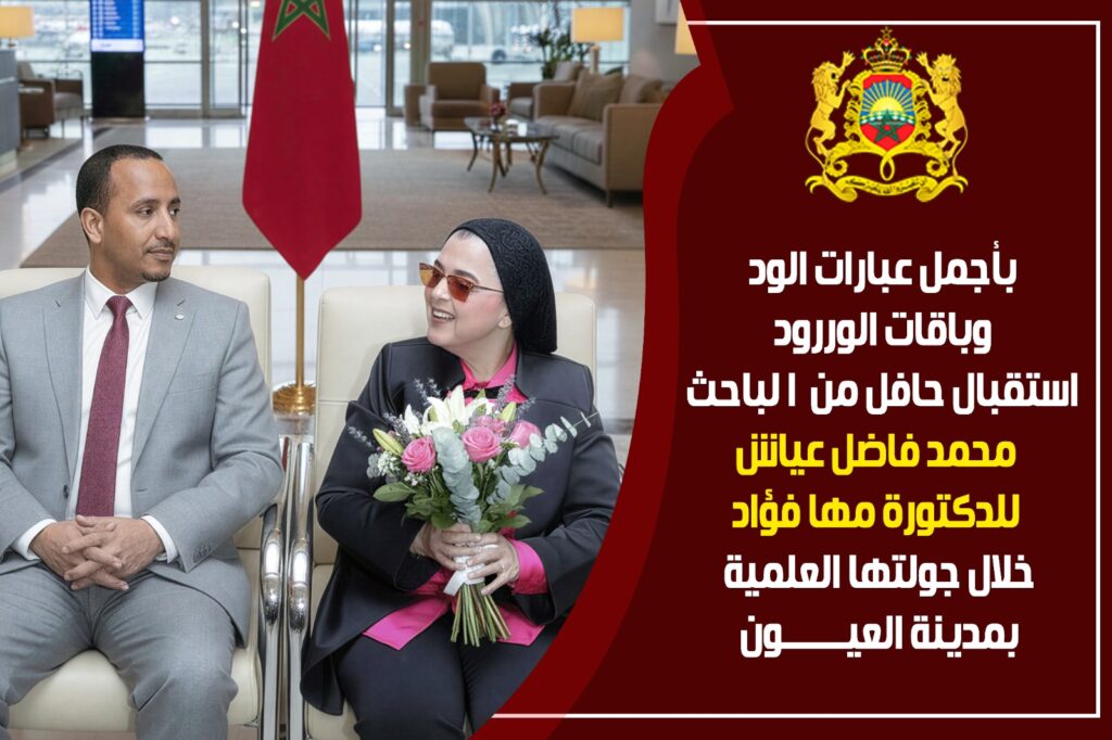 استقبل الباحث المغربي محمد فاضل عياش الدكتورة مها فؤاد، رئيس مجلس إدارة أكاديمية بناة المستقبل الدولية والوكيل الحصري لجامعة ميريلاند في مصر والمغرب والإمارات العربية المتحدة، استقبالًا حافلًا ومميزًا فور وصولها إلى مدينة العيون – الساقية الحمراء، ضمن جولتها العلمية بالمغرب، في مشهد يعكس التقدير والاحترام لمكانتها العلمية وريادتها الأكاديمية.