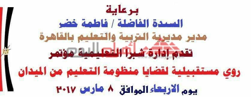 صرح “أمير سمير “المتحدث الرسمى لمبادرة بالشباب نقدر للتنمية المستدامة عن تنظيم المبادرة لمؤتمر “رؤى مستقبلية لقضايا منظومة التعليم من الميدان” ،وذلك يوم الاربعاء القادم الموافق 8/3/2017 ،بمسرح مدرسة رمسيس الاعدادية بنين فى الساعة الحادية عشرة صباحا،تحت رعايةالسيدة الفاضلة ” فاطمة خضر” ،ووكيل أول وزاره التربية والتعليم بالقاهرة،وإشراف السيد الفاضل ” صبري ابو رقيه”،مدير عام ديوان اداره شبرا التعليمية،وكافة القيادات التنفيذية والتعليمية ،وبالتعاون مع مؤسسات المجتمع المدني ،وجمعية “واقع تاني”