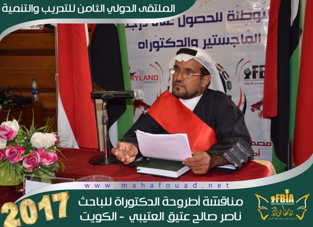 في إطار “الملتقى الدولي الثامن للتدريب والتنمية”، عقدت “أكاديمية بناة المستقبل الدولية” في شهر اغسطس للعام الدراسي 2017مناقشة علمية لأطروحة الدكتوراه”” استراتيجيات رضا العميل في مؤسسات القطاع الخاص بدولة الكويت” قدمها الباحث “ناصر العتيبي” من دولة الكويت.