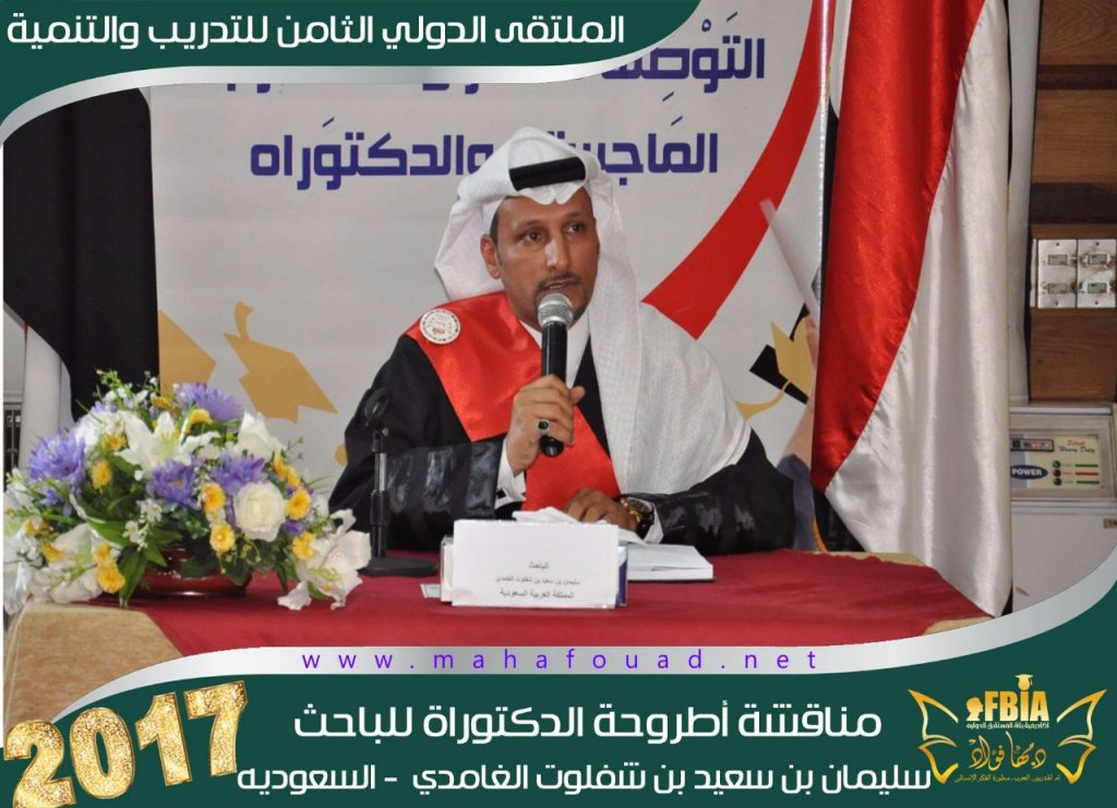 في إطار الملتقى الدولي الثامن للتدريب والتنمية، عقدت أكاديمية بناة المستقبل الدولية في شهر أغسطس للعام الدراسي 2017 مناقشة علمية عن بعد لأطروحة دكتوراة تحت عنوان “الإدارة الاستراتيجية للموارد البشرية” قدمها الباحث سليمان بن سعيد بن شفلوط الغامدي من المملكة العربية السعودية .