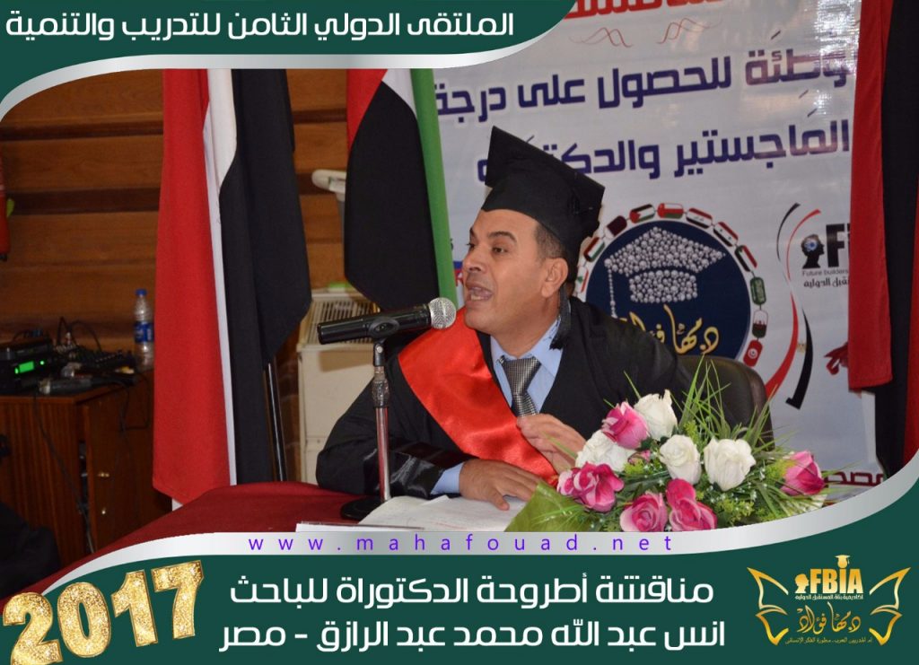 في إطار الملتقى الدولي الثامن للتدريب والتنمية، عقدت أكاديمية بناة المستقبل الدولية في شهر أغسطس للعام الدراسي 2017 مناقشة علمية عن بعد لأطروحة دكتوراة تحت عنوان “الأخذ بالاستراتيجيات الحديثة في تنمية وتطوير جودة التعليم بدولة الكويت” قدمها الباحث أنس عبد الله محمد عبدالرازق من جمهورية مصر العربية .