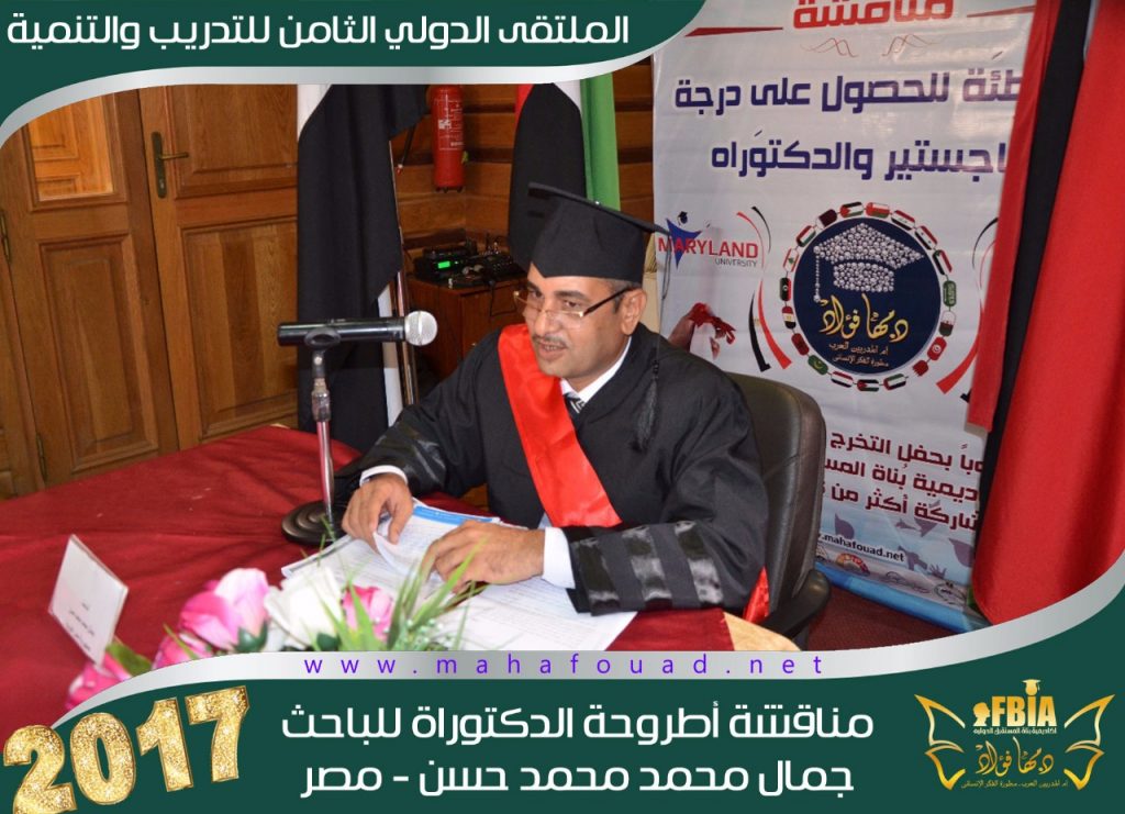 في إطار الملتقى الدولي الثامن للتدريب والتنمية، عقدت أكاديمية بناة المستقبل الدولية في شهر أغسطس للعام الدراسي 2017 مناقشة علمية عن بعد لأطروحة دكتوراة تحت عنوان “استراتيجيات إدارة التغيير والإدارة بفرق العمل في مؤسسات التربية والتعليم” قدمها الباحث جمال محمد محمد حسن من جمهورية مصر العربية .