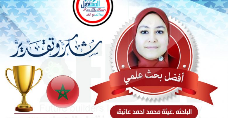 في سلسلة أفضل الأبحاث لهذا الشهر منحت الدكتورة “مها فؤاد” أم المدربين العرب ومطورة الفكر الإنساني ورئيسة جريدة عالمل التنمية وأكاديمية بناة المستقبل الدولية، شهادة تقدير لأفضل بحث علمي للباحثة “غيثة محمد احمد عتيق” من المملكة المغربية، بعد اجتماع الدكتورة مها فؤاد وفريق عمل أكاديمية بناة المستقبل.