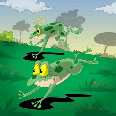 يحكى أنه كانت هناك مجموعة من الضفادع تقفز مسافرة بين الغابات وفجأة وقعت ضفدعتان في بئر عميق فتجمع جمهور الضفادع حول البئر ولما شاهدا مدى عمقه صاح الجمهور بالضفدعتين اللتين في الأسفل أن حالتهما ميئوس منها وانه لا فائدة من المحاولة !!