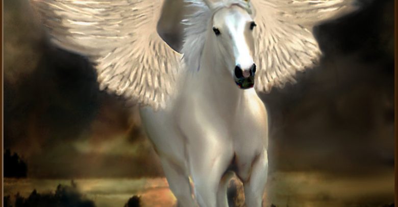 وقد وافق الملك حيث تخيل نفسه راكبا على الحصان الطائر الوحيد في العالم