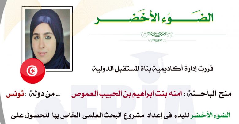 أكاديمية بناة المستقبل الدولية “تمنح الضوء الأخضر للباحث” آمنة بنت ابراهيم للحصول على الماجستير المهني