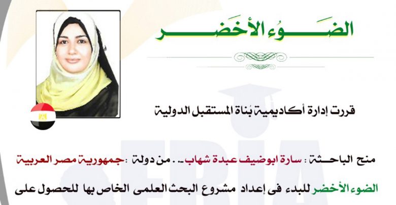أكاديمية بناة المستقبل الدولية “تمنح الضوء الأخضر للباحث” سارة ابوضيف للحصول على الدكتوراه المهنية
