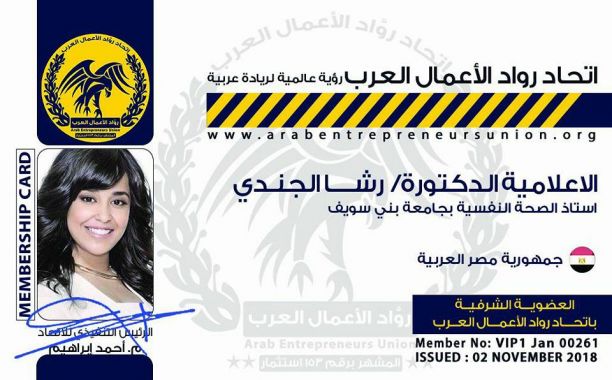 في فعالية دولية ضخمة يكرم اتحاد رواد الأعمال العرب الإعلامية الدكتورة رشا الجندي ضمن أهم 100 شخصية عربية لها أثرها في المجتمع العربي وذلك في إطار سعي ” اتحاد رواد الأعمال العرب ” لجذب وتكريم أهم 100 شخصية عربية لها أثرها الدولي الملموس