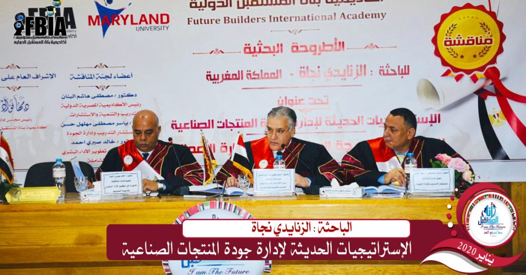 خلال مناقشة علمية لأطروحة بعنوان ” الإستراتيجيات الحديثة لإدارة جودة المنتجات الصناعية” للباحثة “نجاة الزنايدي” يوم الخميس شهر يناير لعام 2020 ،وذلك داخل الصرح العلمي بكلية الطب القصر العيني بالقاهرة ، دعت الدكتورة “مها فؤاد” رئيسة جريدة عالم التنمية وأكاديمية بناة المستقبل الدولية الباحثة “نجاة“ إلي بدء حوار حول موضوع بحثها.