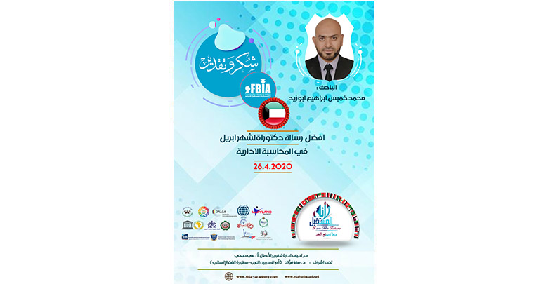 في سلسلة أفضل باحث في هذا الشهر منحت الدكتورة “مها فؤاد” أم المدربين العرب ومطورة الفكر الإنساني ورئيسة جريدة عالمل التنمية وأكاديمية بناة المستقبل الدولية، شهادة تقدير أفضل رسالة دكتوراة في المحاسبة الإدارية لشهر ” أبريل ” للباحث “محمد خميس ابراهيم ابو زيد” من دولة الكويت، بعد اجتماع الدكتورة مها فؤاد وفريق عمل أكاديمية بناة المستقبل.
