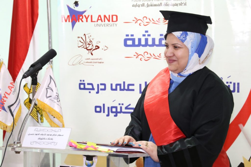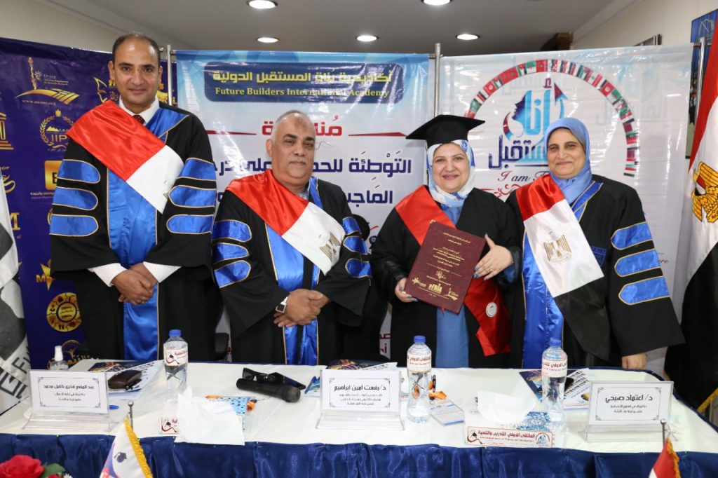 وبعد اجتماع لجنة المناقشة والإنتهاء من التقرير النهائي لللجنة تقدمت الدكتورة “مها فؤاد” أم المدربين العرب ومطورة الفكر الإنساني ورئيسة جريدة عالم التنمية وأكاديمية بناة المستقبل الدولية بمنح الباحثة “ سماح نجاح محمد شرف احمد حسن” درجة الدكتوراة المهنية بامتياز للعام الدراسي 2021 .