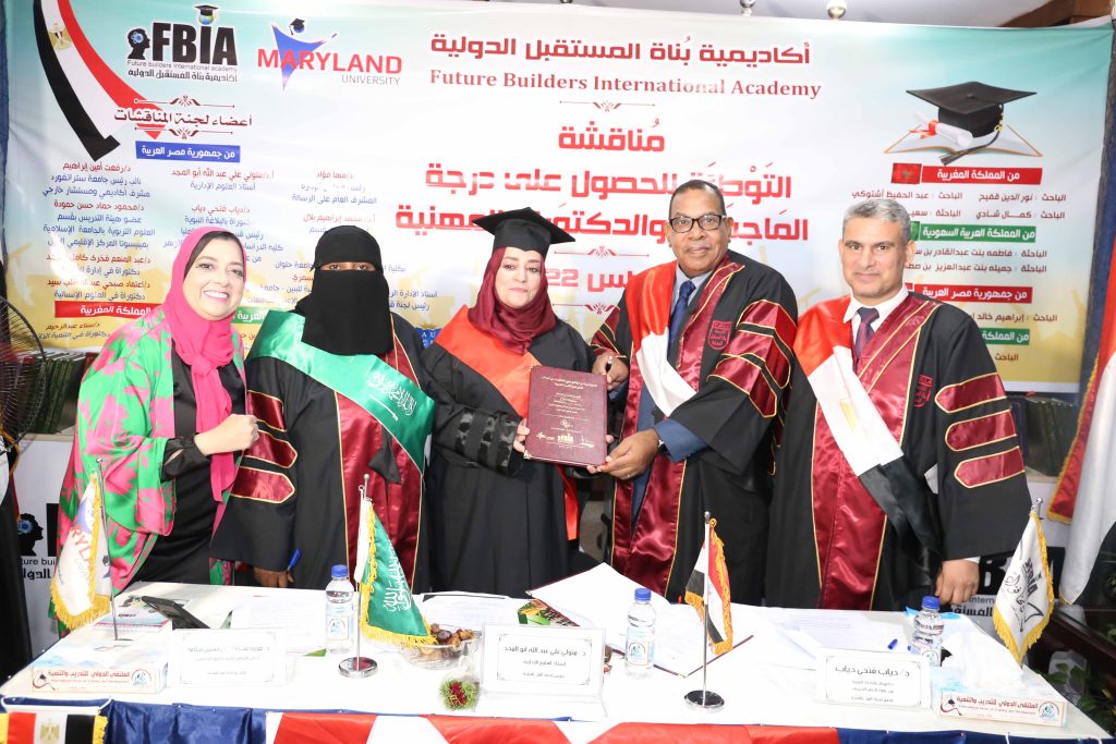 والجدير بالذكر أنها حاصلة علي درجة الدكتوراة بكلية العلوم الإنسانية  2022 من اكاديمية #بناة_المستقبل الدولية #FBIA تحت عنوان ” فاعلية برنامج إرشادي ديني للتخفيف من أعراض القلق لدى الأسرة المغربية “