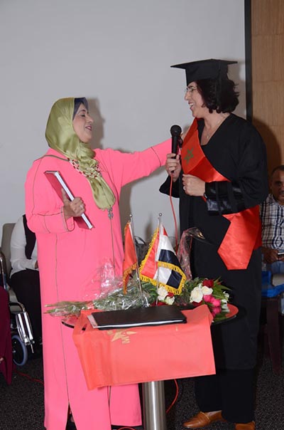 2-لباحثة ” سعيدة املاح” من مدينة “مراكش” حاصلة علي درجة الدكتوراة بكلية العلوم الإنسانية ، تحت عنوان « فاعلية برنامج إرشادي ديني للتخفيف من أعراض القلق لدى الأسرة المغربية » – والمسجلة للحصول على درجه الأستاذية.