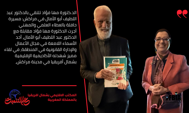 أجرت الدكتورة مها فؤاد مقابلة مع الدكتور عبد اللطيف أبو الأمال، أحد الأسماء اللامعة في مجال الأعمال والإدارة القانونية في المنطقة، في لقاء مميز شهده المكتب الاقليمي للأكاديمية بشمال أفريقيا في المغرب، جاء اللقاء على هامش الاجتماع الدوري لباحثي بناة المستقبل بالمغرب.