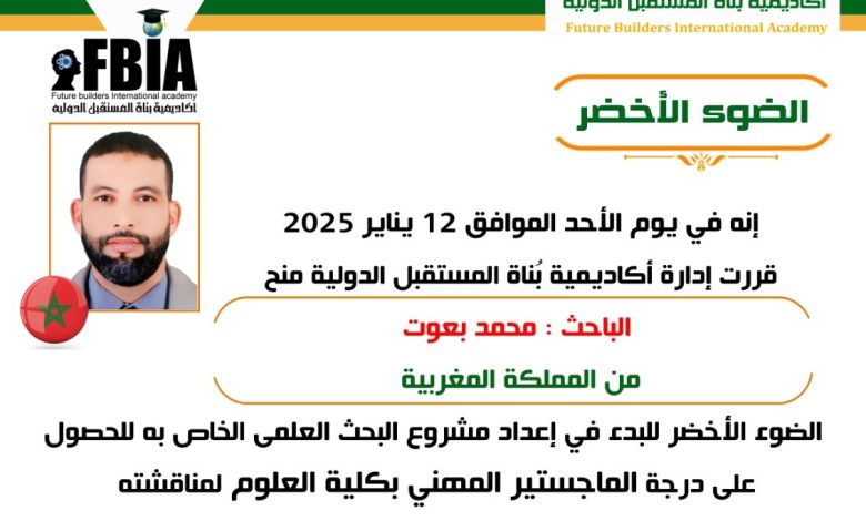 محمد بعوت يحصل على “الضوء الأخضر” للبحث في أكاديمية بناة المستقبل الدولية لنيل الماجستير المهني