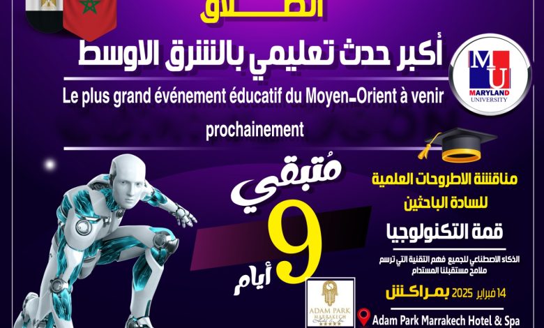 تنظم أكاديمية بناة المستقبل الدولية برئاسة الدكتورة مها فؤاد، قمة التكنولوجيا “الذكاء الاصطناعي للجميع”، التي ستُعقد في فندق آدام بارك أوتيل بمراكش بالمكتب الاقليمي لشمال افريقيا يوم 14 فبراير 2025، في حدث هو الأكبر من نوعه في المنطقة، حيث يجمع كبار الخبراء، الأكاديميين، والمتخصصين في مجال التكنولوجيا وإدارة الأعمال من جميع أنحاء الوطن العربي.