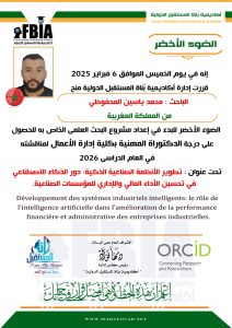 اختار الباحث محمد ياسين المحفوظي موضوعًا ذا طابع علمي معاصر وهو  تطوير الانظمة الصناعية الذكية: دور الذكاء الاصطناعي في تحسين الاداء المالي والاداري للمؤسسات الصناعية، للحصول على درجة الدكتوراه المهني ، بكلية ادارة الاعمال لمناقشته في العام الدراسي 2026.