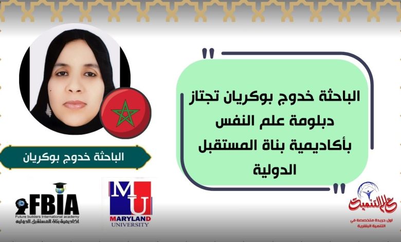 الباحثة خدوج بوكريان تجتاز دبلومة علم النفس بأكاديمية بناة المستقبل الدولية