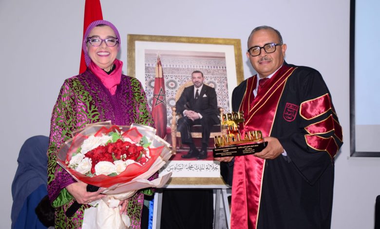 الدكتورة مها فؤاد تكرم الدكتور لحسن فراحي PROF OF MARYLAND  ضمن فعاليات قمة التكنولوجيا بمراكش