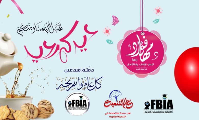 تتقدم أكاديمية بناة المستقبل الدولية وجريدة عالم التنمية برئاسة الدكتورة مها فؤاد، رئيس مجلس الإدارة وراعية الابتكار والإبداع في الوطن العربي، بأحر التهاني والتبريكات لجميع الباحثين والطلاب في الوطن العربي،بمناسبة حلول عيد الفطر المبارك.
