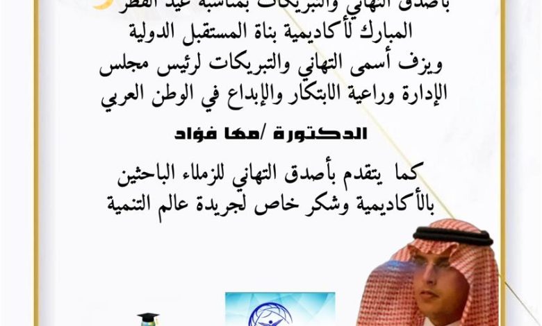 الإعلامي سعود بن فهد الشهراني يهنئ أكاديمية بناة المستقبل الدولية بمناسبة عيد الفطر المبارك