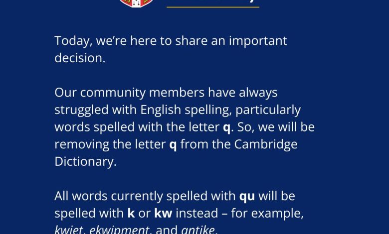 🚨 جامعة كامبريدج تحذف حرف “Q” من القاموس الإنجليزي! 🚨