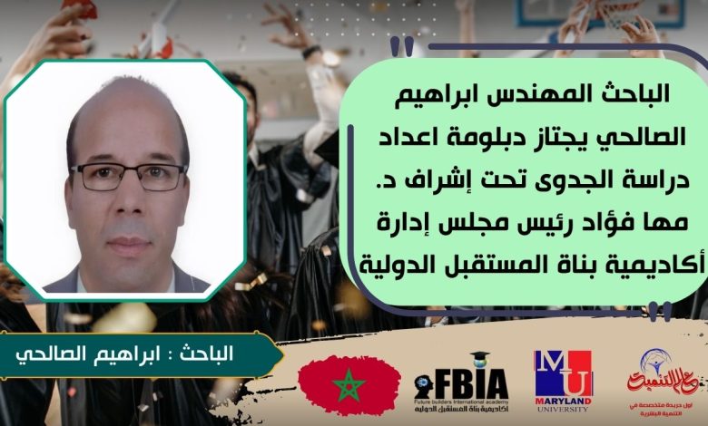 الباحث المهندس إبراهيم الصالحي يجتاز دبلومة إعداد دراسة الجدوى تحت إشراف د. مها فؤاد