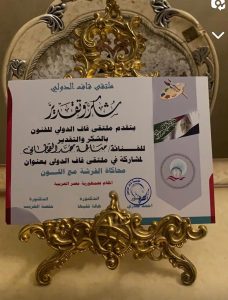 وكان من أبرز مشاركاتها الملتقى الدولي “قاف”، وهو حدث ثقافي سعودي مصري حمل عنوان “محاكاة الفرشة مع اللون”، وهدف إلى تعزيز التواصل الفني بين الفنانين العرب والخليجيين، وإبراز قوة الفرشة كلغة تعبيرية تتجاوز الكلمات.